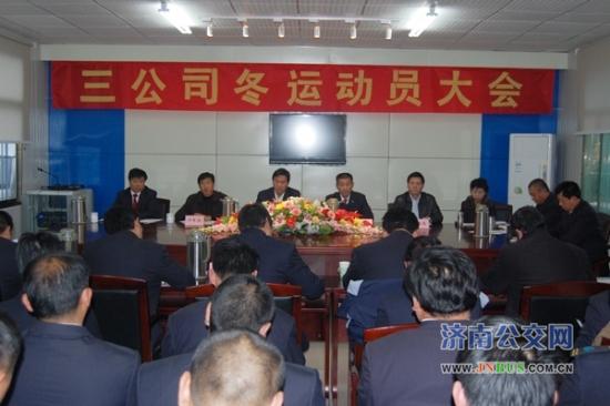 三公司党委书记、经理曲修业对今年的冬运工作作了动员。他要求,全体职工要统一思想,提高认识,杜绝麻痹松懈思想;要高度重视安全工作,加强职工教育培训;要制定各项应急方案,认真组织,狠抓落实;认真做好后勤保障工作,保证职工身体健康。曲经理希望全体职工继续发扬公交人不怕吃苦、敢打硬仗、任劳任怨的全运会精神,坚定信心、真抓实干,保质保量完成冬运的各项工作任务,为创造济南公交的美好未来而努力奋斗。