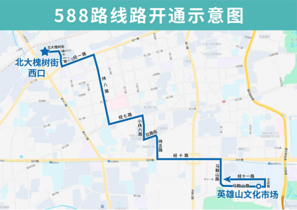 济南公交官网讯 为持续做好线网优化工作,加强与经十路地铁4号线的接驳,增加纬八路、小纬六路等道路公交覆盖。自2026年4月15日起,济南公交开通试运行588路。