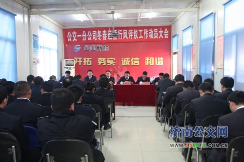 济南公交官网讯 11月13日上午,一分公司在姚家车场会议室召开冬春运暨行风评议工作动员大会。总公司副总经理李双喜,一分公司班子成员及各车队管理人员、驾驶员代表共计70余人参加了会议。