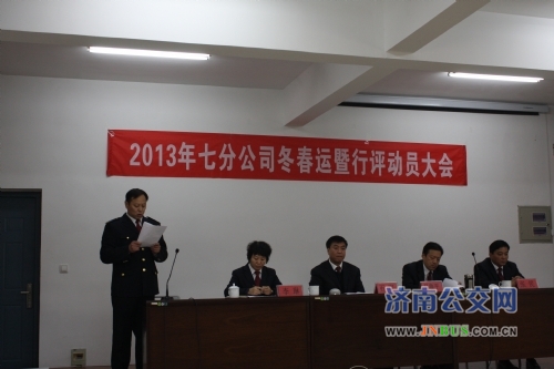 为认真贯彻总公司冬春运暨行风评议动员大会要求,全面落实总公司“抓服务、保安全、促行风”冬春运竞赛活动,营造和谐冬季出行环境, 11月13日上午,七分公司在公司机关会议室召开2013年冬春运暨行风评议动员会,总公司副总经理石军出席会议,七分公司班子成员、车队、各部室负责人、管理人员及驾驶员、站务员代表共约70余人参加了会议,会议由七分公司党委书记李琳主持。