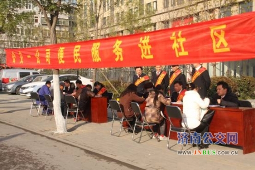 济南公交官网讯 为提高公司服务质量和水平,着力解决乘客关注的热点难点问题,11月19日上午,公交一分公司在长盛小区开展“便民服务进社区活动”。