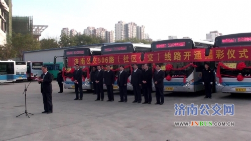 济南公交官网讯 为进一步完善公交线网,方便领秀城、玉函小区等沿线小区居民出行,解决大型社区居民出行“最后一公里路”难题,26日上午,济南公交506路“社区公交线”正式开通。总公司党委副书记刘波、副总经理、营运市场部部长谢刚、营运市场部副部长孙涌、二分公司班子成员、职工代表以及人大代表、乘客代表共计40余人参加了仪式。揭彩仪式由二分公司党委副书记、纪委书记、工会主席于建民主持。