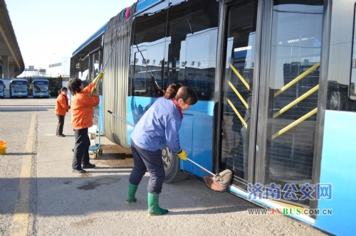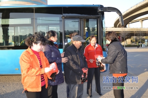 近日,气温下降,北风带着阵阵寒意侵袭泉城,公交保洁人员在寒风中依然认真打扫车辆卫生。为向敬业的保洁人员表示谢意,七分公司一队购买了围巾和手套送给BRT2、BRT5以及BRT临时线路的保洁人员,对她们辛勤的劳动表示感谢。
