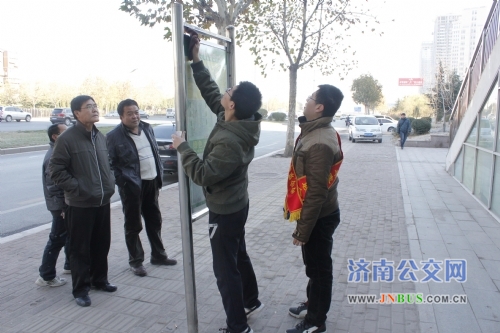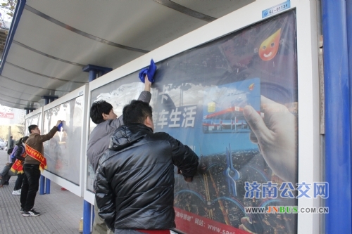 济南公交官网讯 近日天气转冷,为了方便市民出行,给市民提供一个良好的乘车环境,广告公司团支部与山东大学青年志愿者联合会共同对经十东路的站头设施进行清洁。