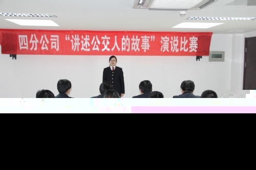 济南公交官网讯 为激发广大团员青年的工作热情,推动公司冬(春)运工作和行评工作的顺利开展, 12月12日,四分公司举行“讲述公交人的故事”演说比赛。总公司工会主席张栩、副总经理谢刚、团委副书记田思民,四分公司经理王晓刚、党委副书记崔书记、副经理常晖,公司管理人员及团员青年代表参加活动。