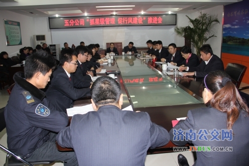 济南公交官网讯 为进一步加强基础管理,夯实星级管理、星级服务工作,促进公交服务能力和服务水平不断提升,深入推进行风建设工作,12月18日,五分公司组织召开了“抓星级服务 促行风建设”推进会。公司经理张庆就进一步做好“双争”工作提出了具体要求。会议由公司党委书记陈兰主持。