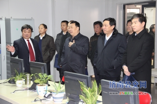 今天上午,山东省春运检查组领导一行到济南西客站公交枢纽检查春运安全工作。总公司副总经理谢刚、总公司营运市场部副部长孙涌陪同检查。检查组领导先后来到济南公交四分公司监控中心、四队调度室,询问了公交场站安全、智能调度使用、枢纽车辆配备和公交对西客站高铁旅客服务情况,对冬、春运期间公交职工为服务市民乘客所付出的努力表示感谢。公交四分公司经理王晓刚介绍了相关情况。