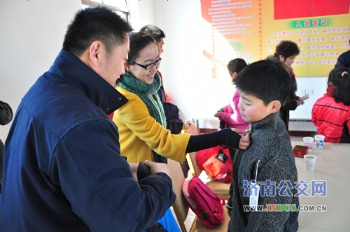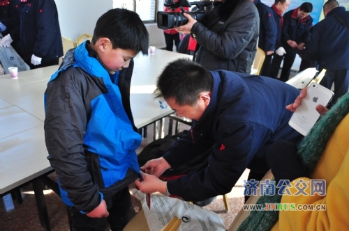 济南公交官网讯 2013年1月22日,济南公交恒通公司雷锋车队十名“的哥”驱车来到长清区石家屋村,看望慰问那里的七名留守儿童,为他们送去毛衣、冲锋衣等物品,给他们送去来自恒通雷锋车队的新年问候。
