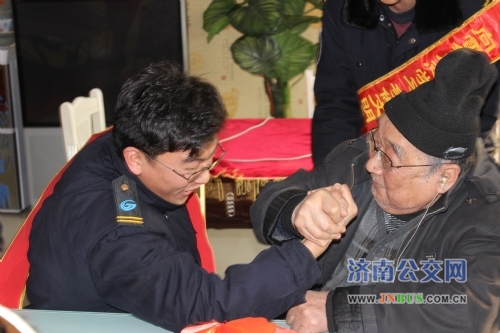 济南公交官网讯 “爱筑夕阳红,欢喜过‘孝’年”,1月23日,“孝”年当天,济南公交四分公司的青年代表们来到了白马花园珍珠老年公寓,为老人们送上了最真挚的祝福。