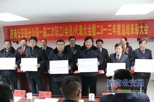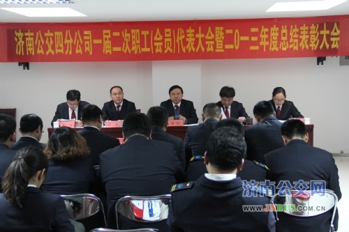济南公交官网讯 2014年1月24日下午,四分公司召开一届二次工会职工(会员)代表大会暨2013年度总结表彰大会。总公司副总经理谢刚,总公司营运市场部副部长孙涌,公司班子成员及50多名职工代表参加了会议。会议由公司党委副书记、工会主席崔芳芳主持。