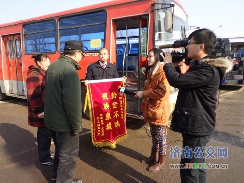 济南电视台《今晚20分》栏目记者采访拾金不昧的114路驾驶员王冬明