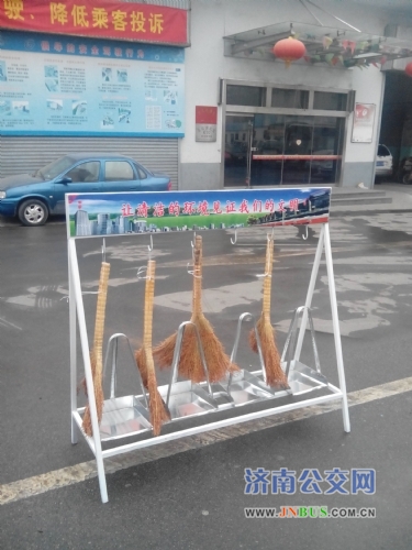 为做好场站管理,切实落实好垃圾不落地工作,物业公司制做保洁用品放置架,便于定置管理、定置存放。近期陆续送到车队。保洁用品放置架结构简单,保洁用品取放方便,在架子的上方设计了标语张贴栏,提示员工爱护环境,做文明公交人。