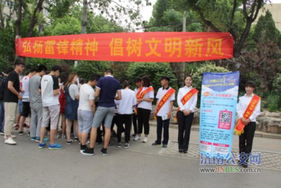 活动现场五分公司二队队长周鹏首先向市民和媒体朋友介绍了近六年以来济南大学站点排队乘车的具体实践。同时代表车队全体职工表态,车队将多措并举,加强宣传,加大检查力度,树立坚定信心,立足本职,以必胜心态大战100天,确保各项工作落到实处,全力以赴打好创城攻坚战。