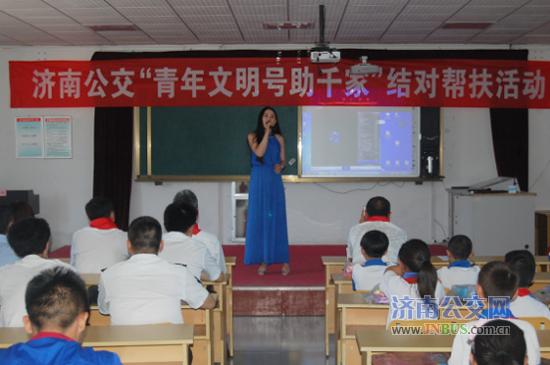 济南公交官网讯 为发挥共青团作用,积极响应共青团济南市委青春扶贫行动计划,5月25日下午,济南公交专门组织所属的基层团委和团支部副书记、24个市级青年文明号代表到历城区仲宫镇锦绣川中心小学开展了“青年文明号助千家”结对帮扶活动。