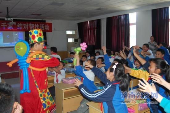 总公司团委兼职副书记董丹现场为同学们做了一场生动的报告,她现身说法,鼓励同学们自强不息,勇敢面对困难。志愿者们还为孩子们准备了文艺节目,七分公司张晨晨的一首《阳光总在风雨后》,表达了济南公交对贫困儿童的关心和鼓励,而胡晓彤和李洋的两曲独舞,更是点燃了现场气氛,孩子们不由自主的跟着音乐一起舞动。志愿者们专门准备的小丑表演,引得孩子们阵阵欢呼,表演者不但为孩子们送去气球礼物,还与孩子们积极互动,孩子们的童真和活泼在这一刻全部迸发,现场洋溢着欢乐的氛围。