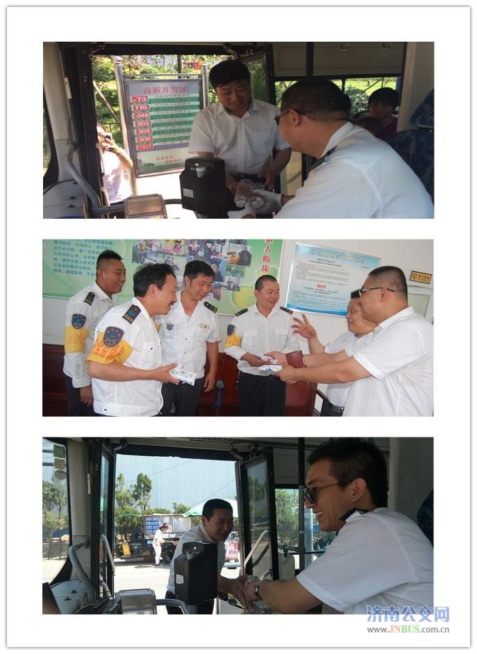济南公交官网讯 5月27日,气温最高达36度,三分公司各队提前备好三水,做好职工防暑降温工作。中午,车厢温度更是直逼50度,公司班子成员带领机关管理人员上站上线,为辛苦在一线的驾驶员们送水,在为大家带去丝丝清凉的同时,也叮嘱大家高温天气下一定要谨慎驾驶,注意安全。
