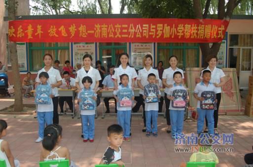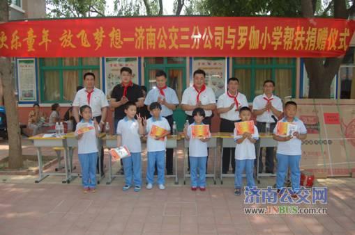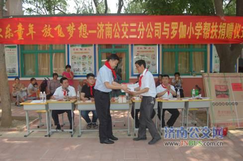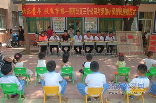 上午10点,在《公交人》的欢快乐曲声中,学生代表为各位来宾佩戴了红领巾,罗伽小学崔殿厚校长及三公司副经理宋琰分别进行致辞,历城区交通局刘书记向校领导捐赠了图书,公司高星级驾驶员代表向小学生捐赠了书包及文体用品,公司驾驶员与小学生们共同进行了文艺演出,最后,公交安全员为学生们讲解了安全乘车知识。