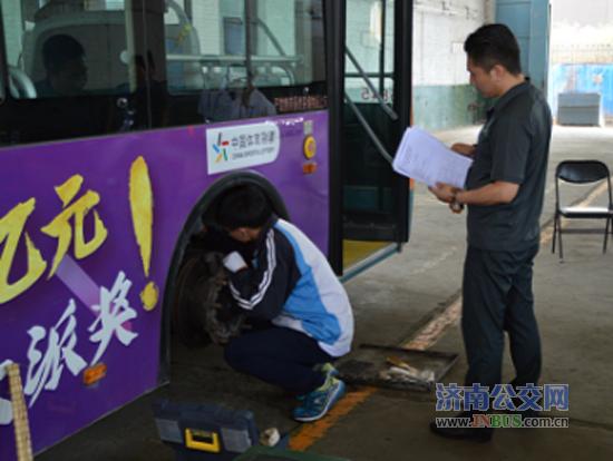 6月1日下午,市教研院职教部兰俊宝主任、理工职专石磊主任等6人组成的抽测小组来到学校实习实训基地济南公交维修公司,对学校抽测全程进行了监督和评估。本次抽测我校技能项目为公交车辆盘式制动器的拆装。我校2014级维修班15名学生参加了测试。