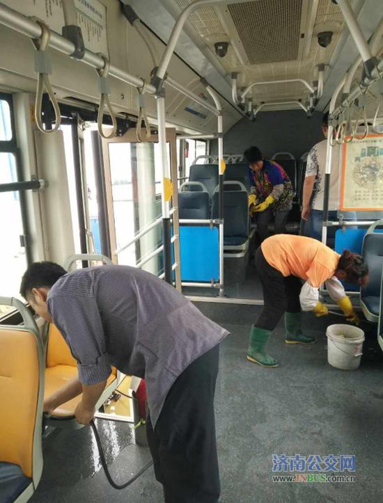 济南公交官网讯 为更好的落实总公司创建全国文明城市工作部署,按照总公司创城调度会和物业公司办公会的要求,6月初,物业公司班子成员带领保洁分公司检查人员采取不定时、不间断的检查方式,对所属停车场和公交车辆卫生进行了综合检查。