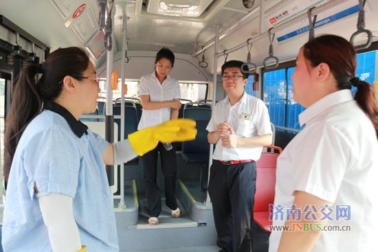 在李琳书记的带领下,同行的管理人员参观了兄弟车队车辆卫生清理情况,并虚心向车队负责人及保洁员请教卫生死角去污清理的方式方法。在整个参观学习的过程中,无论是外出车辆归来还是即将出发的车辆都是一个标准,真正做到了总公司提出的“原车擦原色”的标准。另外,只要走进场站,随处可见驾驶员忙碌的清理车辆卫生的身影,展现了浓浓的创城氛围。