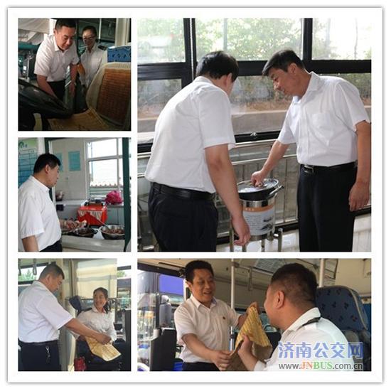 济南公交官网讯 为扎实做好防暑降温工作,践行机关为基层的服务理念,切实保障一线职工的身心健康,公司积极开展送清凉活动。 6月16日,公司班子成员顶着炎炎烈日,将公交车驾驶室座椅凉席和矿泉水送到站房、送到驾驶员手中,让坚持在一线的员工们感受到总公司和公司领导带来的关怀。