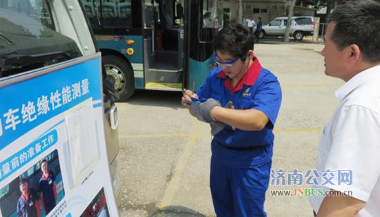总公司专门邀请宇通客车工程师进行新能源车3S管理培训,提高车辆管理维修人员电动车防火、防水、防触电技术知识。维修公司修理人员讲解了电动车绝缘性能检测方法和流程,进行了宇通6米纯电动、豪沃8米纯电动和豪沃12米气电混合动力公交车的绝缘性能检测现场演练。各营运公司、维修公司、旅游公司、物资公司技术经理、车管员、机务员、例检员等进行了观摩学习。