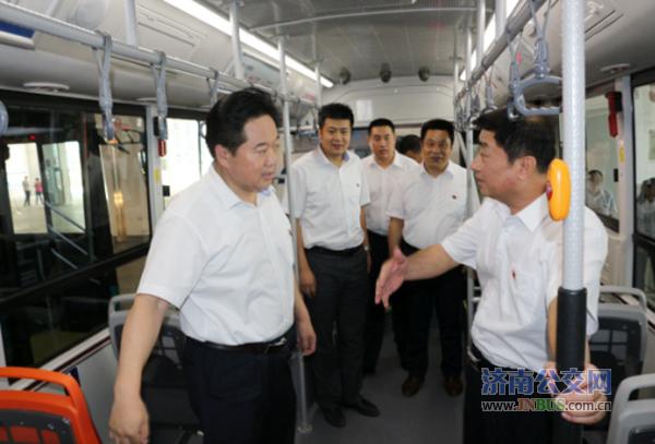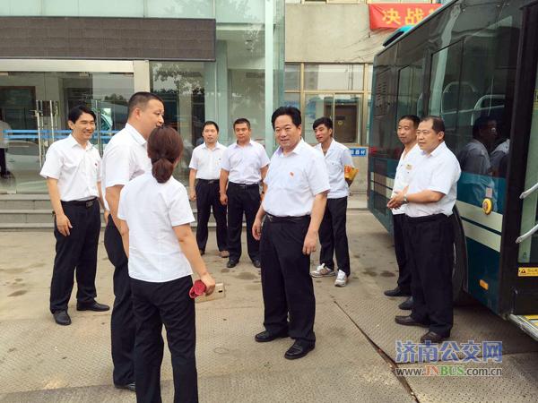 济南公交官网讯 6月23日下午,总公司党委书记、总经理薛兴海来五分公司调研指导工作。