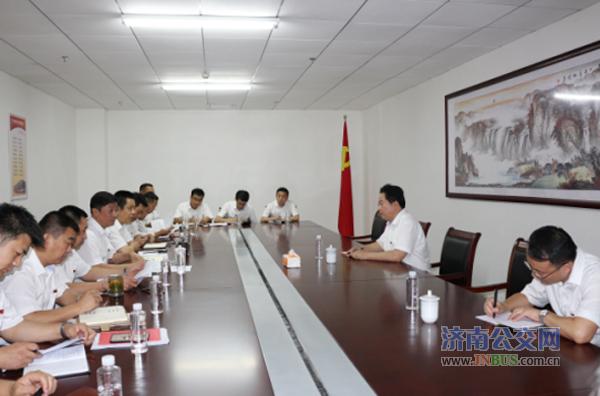 济南公交官网讯 6月23日下午,总公司党委书记、总经理薛兴海到四分公司调研指导工作。公司班子成员、部门负责人及各车队队长参加调研会。