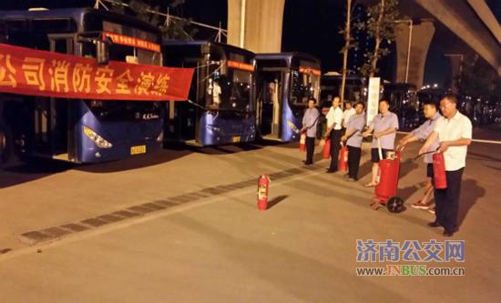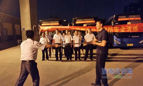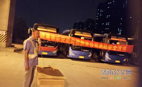 济南公交官网讯 2017年6月21日晚,根据总公司创城百日会战和安全月工作部署,物业公司在大魏停车场联合举办了夜间公交停车场应急演练。