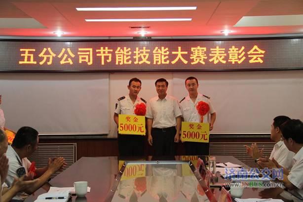 会上,公司领导分别宣读了《2017年五分公司驾驶员节能技能大赛情况》、总公司79号文《2017年度立功受奖先进个人表彰决定》、《关于2017年度第六届驾驶员节能技能比赛表彰决定》。经理张庆对公司前期节能减排工作取得的成绩给予了表杨和肯定,就下一步工作进行了具体指导并提出要求。石军副总经理和张庆经理向获奖选手颁发奖金。