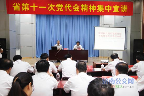 济南公交官网讯 7月7日下午,济南公交在工会礼堂举行省、市第十一次党代会精神宣讲报告会。中共济南市委党校经济学教研部主任吴学军教授受邀作宣讲报告。