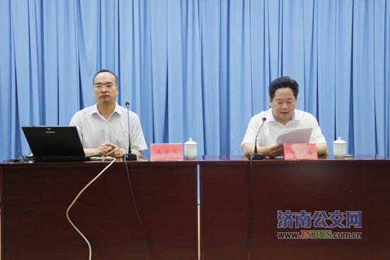 公交总公司党委书记、总经理薛兴海主持报告会。