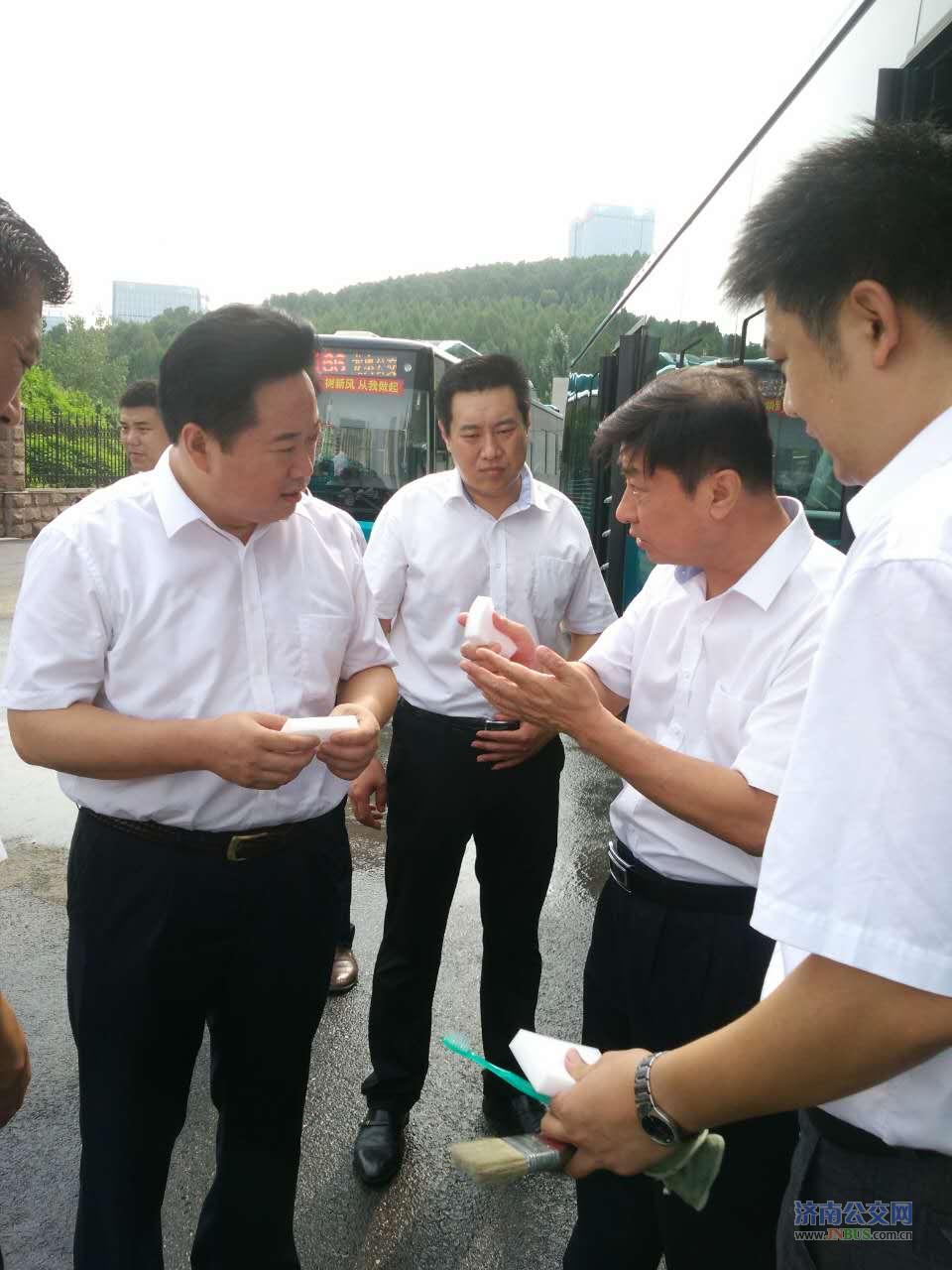 济南公交官网讯 月21日上午,总公司党委书记、总经理薛兴海,副总经理石军、谢刚、金建勇到三分公司对创城工作进行检查指导。