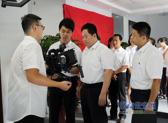 在总公司党委的关心、支持下,经过前期市场调查、甄选人员、交流学习、实践操作、购置设备、征集命名等大量筹备工作后,7月21日上午,“公交人影视制作中心”正式挂牌成立。总公司党委书记、总经理薛兴海出席了简短而隆重的开业庆典,为影视制作中心揭牌,同时,看望慰问公交广告公司奋战在创城一线的职工。仪式上,薛总参观了影视拍摄器材和内景拍摄场地,兴致勃勃的观看了影视制作中心的拍摄的《十年砥砺 决战百日——公交创城工作纪实篇》、《“公交人影视制作中心”动画宣传片》,并对两个宣传片给予了高度的评价。