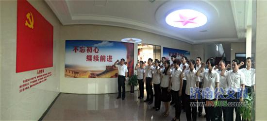 济南公交官网讯 为感受革命情,接受党史再教育,7月28日下午,济南市公共交通总公司职工学校的领导班子校长刘秀华、书记郑宏伟、副校长种衍臣,率领部分党员及预备党员共20人,来到中国共产党山东省党史陈列馆参观学习,感受革命情怀,接受党史再教育,并重温了入党誓词。