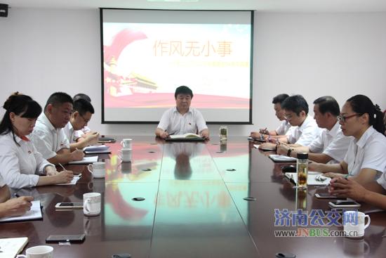 济南公交官网讯 今年是中国人民解放军建军90周年,在盛大的阅兵式后,人民群众的爱国情怀空前高涨。在八一建军节这个庄严的日子里,四分公司党委组织开展了以《作风无小事》为主题的党课教育,公司班子成员、各车队、部室主要负责人及党员代表参与学习,党课由四分公司党委书记、经理王晓刚同志主持。