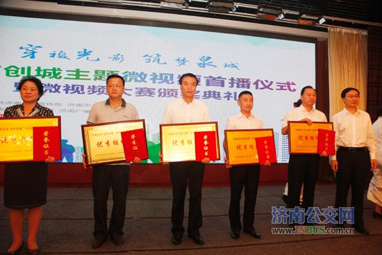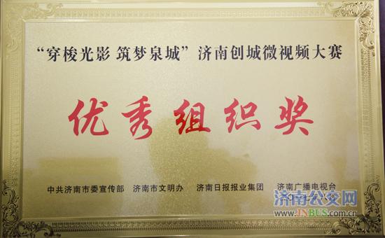 济南公交官网讯 8月16日上午,由中共济南市委宣传部、济南市文明办、济南日报报业集团、济南广播电视台主办,山东省电影家协会指导,舜网承办的“穿梭光影 筑梦泉城”济南创城主题微视频首播仪式暨微视频大赛颁奖典礼在学府大酒店举行,济南市公共交通总公司选送的12部作品荣获2个奖项。总公司在本次大赛中荣获优秀组织奖。市委常委、宣传部部长杨峰出席会议并向获优秀组织奖的单位颁奖。