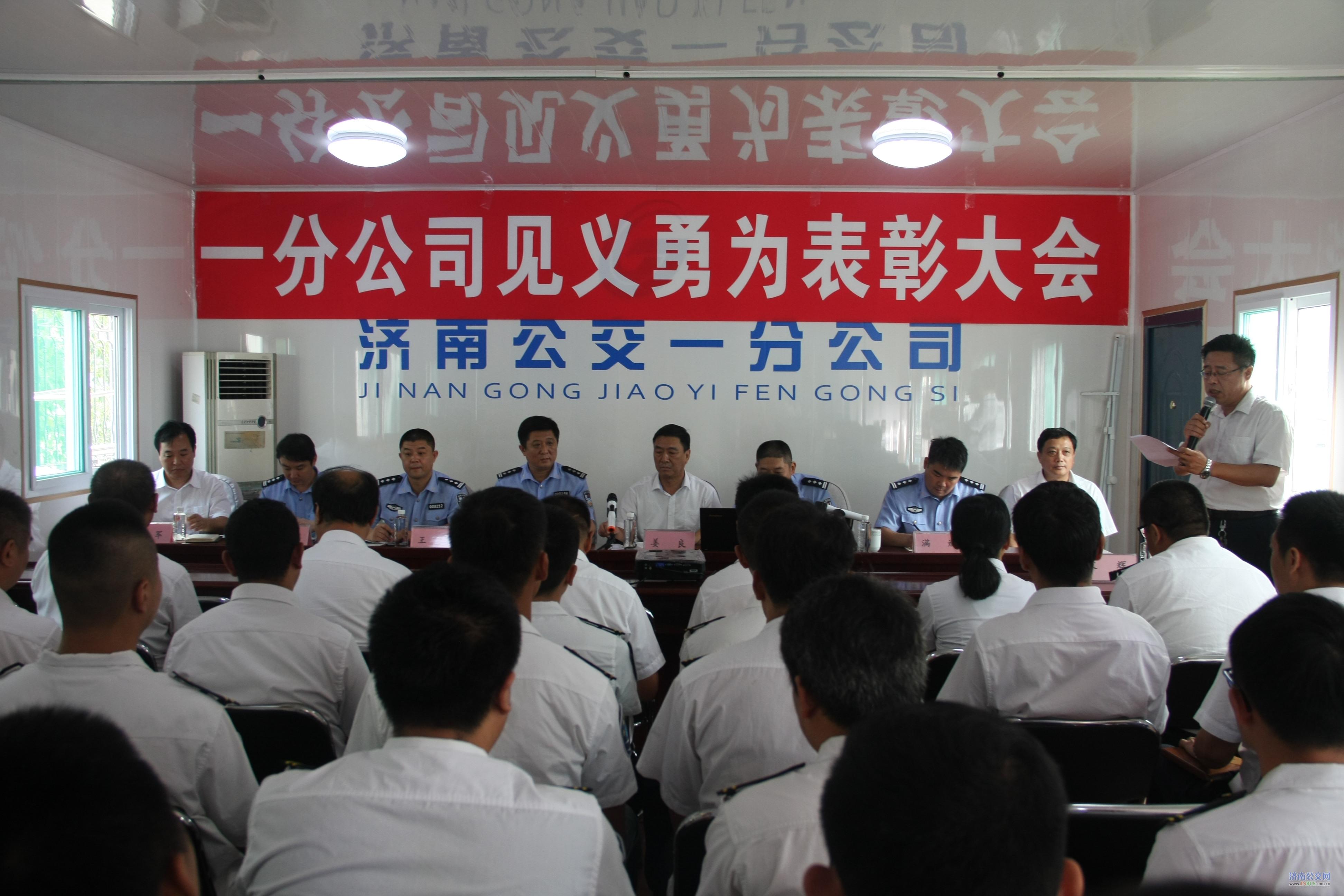 为表彰齐海涛同志的良好表现,提高全员安全意识,切实做好安全防恐工作,8月24日上午一分公司在公交燕山新居召开见义勇为表彰大会。济南市公安局公交分局副局长党育、济南市公安局特警支队处长张保国、济南市公安局公交分局治安大队大队长王军、济南市公安局公交分局第二派出所所长范立刚、教导员满斌、济南公交总公司副经理姜良及一公司班子成员、各车队长、安全员和驾驶员代表共计60余人参加会议。