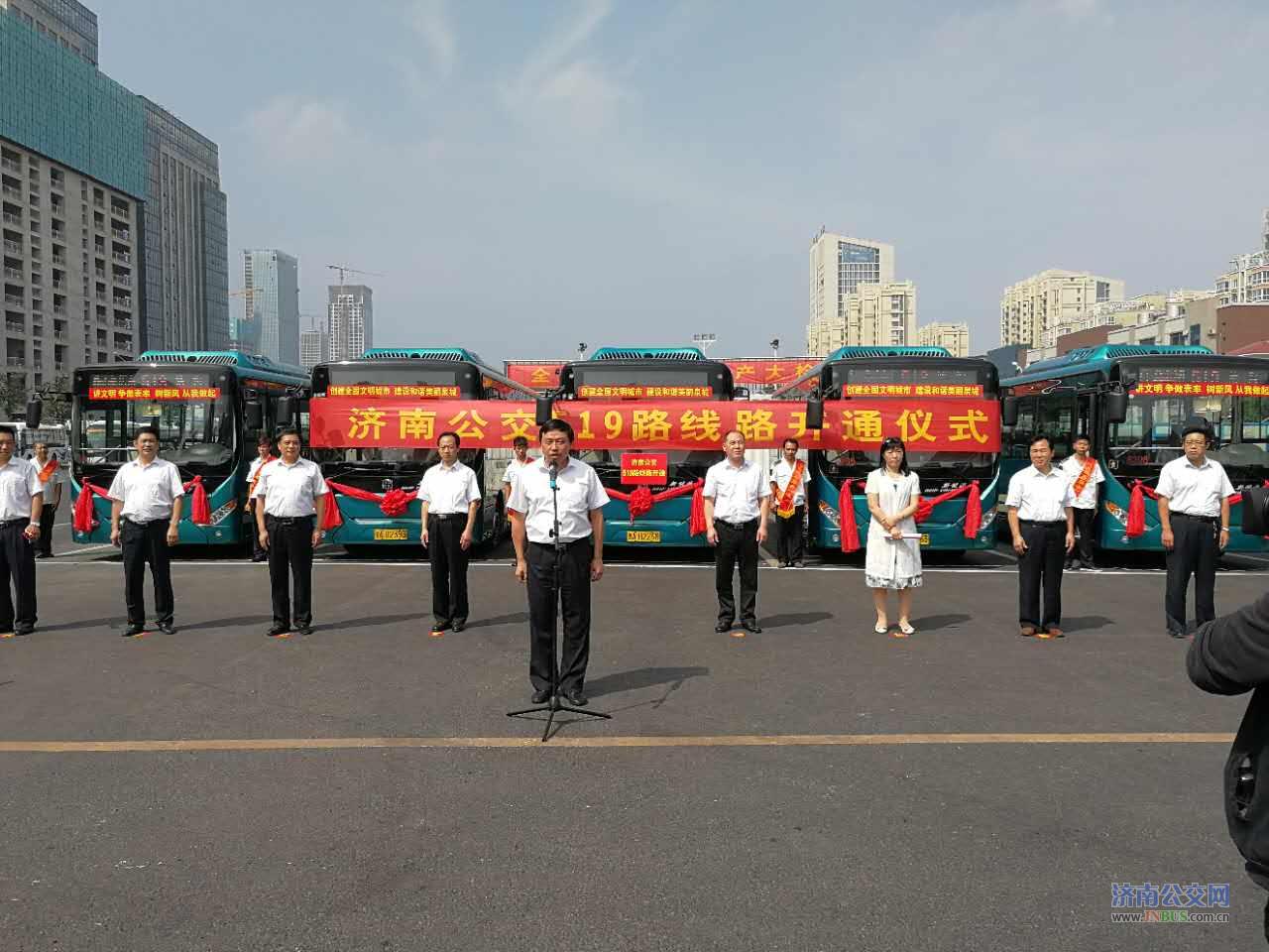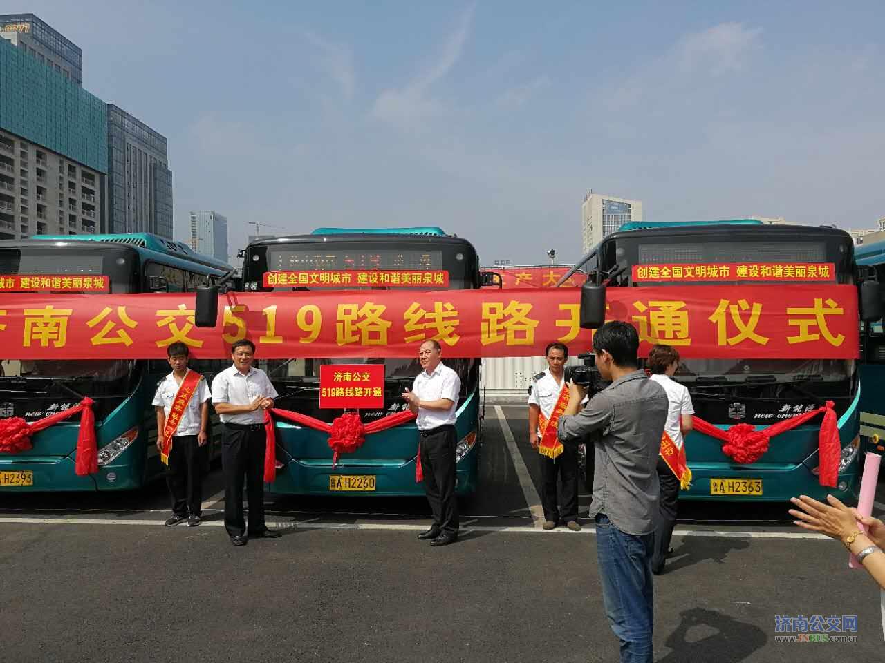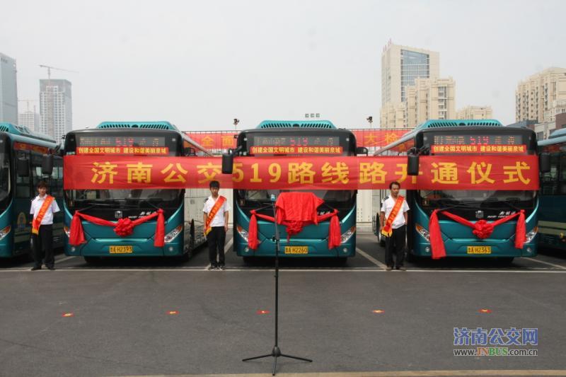 济南公交官网讯 为进一步优化线网结构,提升公交服务水平,方便东部片区南湖花苑、德润天玺、东鲁凤凰上郡、凤凰国际、中铁逸都国际兰庭等小区居民出行,填补东荷路、舜信路、华奥路、汉峪中路、旅游北路等路段公交空白,济南公交519路社区公交于9月1日上午正式开通。10:18分,在燕山新居举行519路线路开通仪式。济南市公共交通总公司副总经理谢刚、营运市场部部长孙涌、维修公司经理王培海出席仪式。新闻媒体代表、乘客代表、济南公交一分公司班子成员、职工代表共80余人参加仪式。