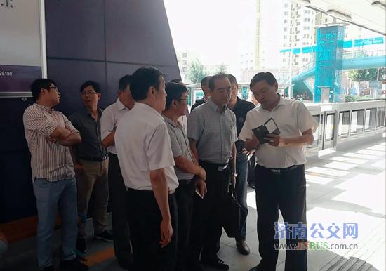 济南公交官网讯 9月7日下午,交通运输部公交都市第四督导组一行8人到济南公交七分公司视察快速公交系统。督导组一行来到BRT经二纬十二路站台参观,并乘坐BRT-3号线,实地考察BRT系统建设运营、BRT运行与接驳及乘客换乘等情况。市交委副主任罗卫东、总公司副总经理谢刚等陪同考察。