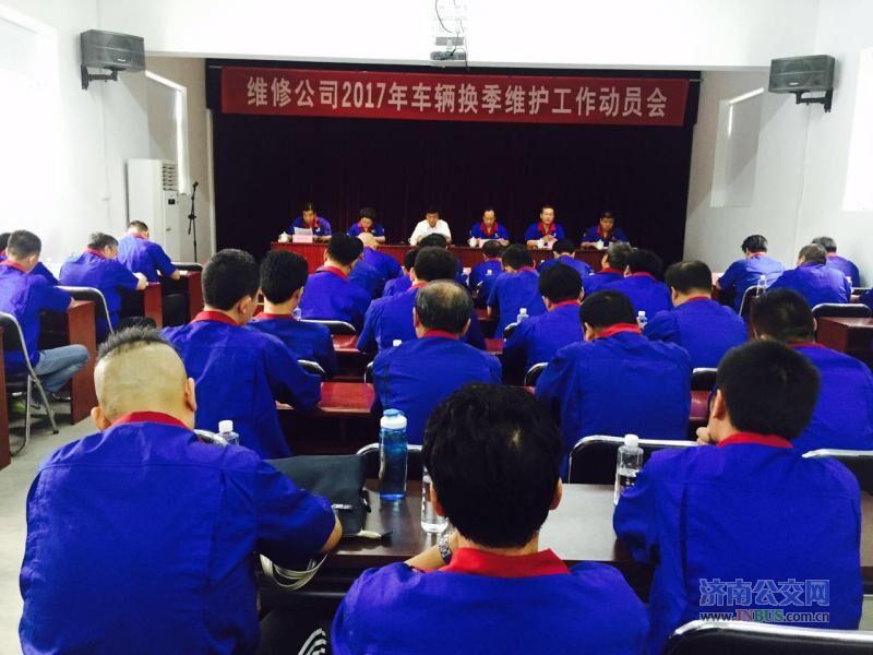 济南公交官网讯 为做好2017年车辆换季维护工作,保证冬运期间车辆技术状况良好,为营运公司提供更加优质、可靠地车辆保障,9月16日上午,维修公司召开了车辆换季维护工作动员大会。总公司副总经理石军出席会议并做了重要讲话。维修公司班子成员、各级管理人员和修理工共60余人参加了动员会。会议由维修公司党委尹萍书记主持。