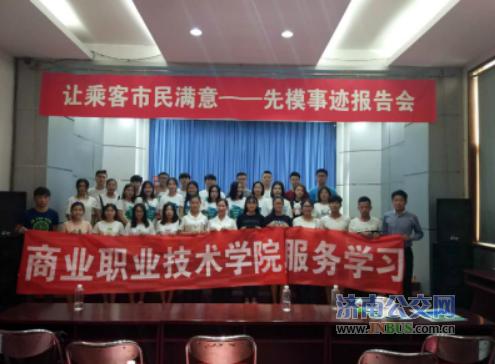 乘客代表王丽在事迹报告会上进行了发言,她从身边的两件小事讲起,号召广大乘客增加对驾驶员的理解和支持。山东商职学院学生代表黄徽、鲁艳伟以及花粉俱乐部的成员向徐维玉、董丹献花并赠送礼物,表达对两位劳模的崇敬之情。报告会后,同学们纷纷和两位明星驾驶员合影留念。