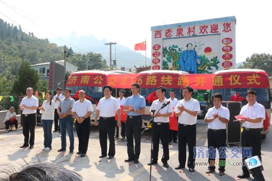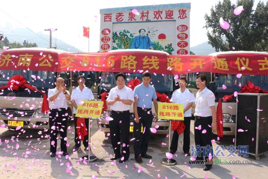 济南公交官网讯 金秋送爽,丹桂飘香。当前正值公交出行宣传周活动期间,为贯彻省、市两级政府对扶贫工作的指示精神,更好的推进精准扶贫,加大帮扶力度,解决东老泉、仲宫王府庄、西老泉等贫困村居民乘公交出行难的问题,9月21日上午济南公交816路线举行开通仪式。济南市南部山区管委会副主任曲永伦,济南市城乡交通运输委员会公共交通处处长于洪涛,仲宫街道办事处主任孟兆军,济南市公共交通总公司党委书记、总经理薛兴海、副总经理谢刚等领导及乘客代表出席开通仪式。三分公司班子成员、管理人员、驾驶员代表共计60余人参加。仪式由三分公司营运副经理宋琰主持。