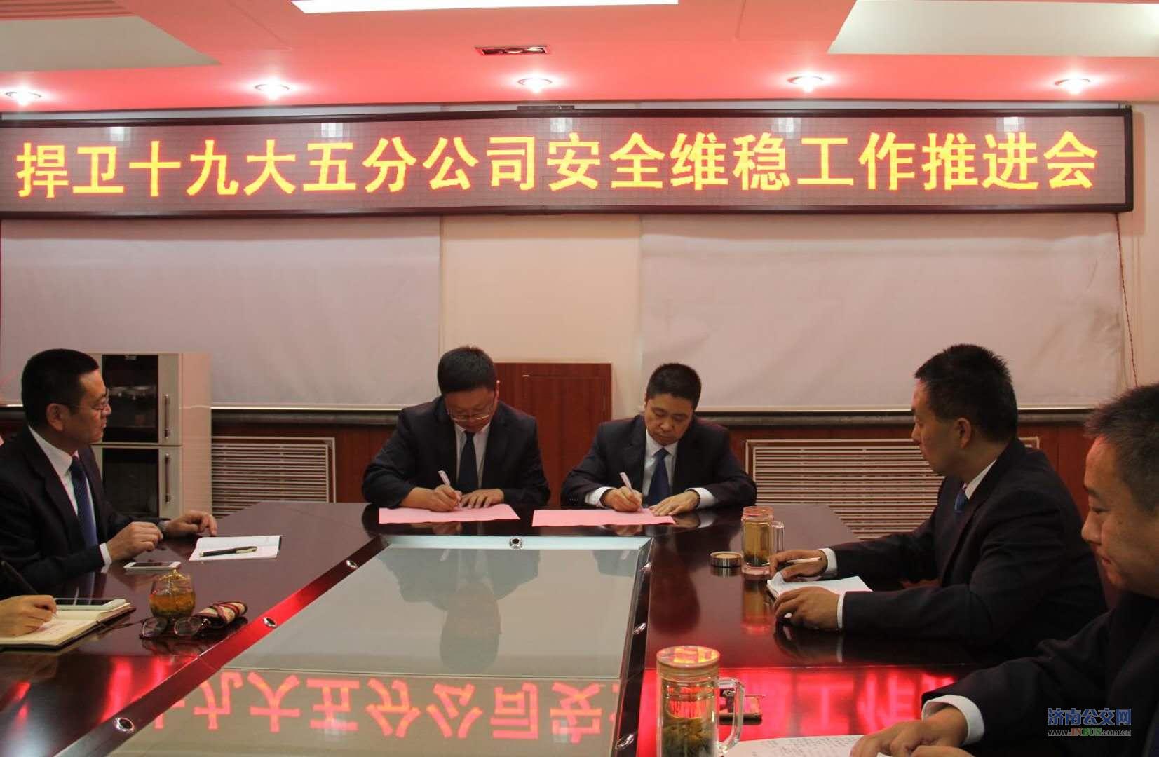 会议首先由各单位汇报了近期各项维稳工作开展落实情况;安全副经理张向阳对公司近期维稳工作进行的重点叮嘱;会上,公司与所属各单位、各部室层层签订了《十九大期间防恐维稳安全责任书》;最后,公司经理张庆同志作了重要讲话,对公司“捍卫十九大安全维稳工作”等重要工作进行了强调部署,提出了三点要求:一是要求全部管理人员要保持24小时通讯畅通,对微信群内下发的通知要及时回复,做到上行下达、下行上报,要纪律严明、令行禁止,层层抓好落实;二是自下周开始,全体管理人员要做好上站值守工作,各车队、部门要按照总公司工作要求,及时开展各项相关工作,严禁擅离职守,并做好值班记录;三是要继续围绕总公司“喜迎十九大,公交文明行”活动要求,开展相关活动,并密切关注职工的思想动态,做好职工情绪梳理工作,稳定职工情绪,按照“谁主管、谁负责”的原则,对重点人员要安排专人靠上去解决,杜绝发生群体事件,积极迎接党的十九大胜利召开。