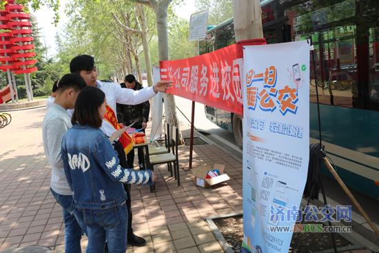 在现场,宣传人员发放了《济南公交便民手册》、《公交绿色出行卡业务介绍》、《济南公交便民地图》等各类宣传图册300余份,大力宣传推介公交绿色出行卡、支付宝、微信扫码乘公交、369出行APP等多项便民服务新举措。大学生积极参与到活动中,询问电子产品的具体使用方法、下载相关软件、询问租车、包车联系途径等,活动取得了良好的效果。