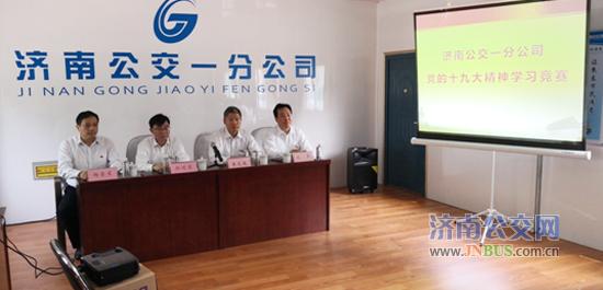 济南公交官网讯 5月9日下午,一分公司在燕山新居会议室举办“灯塔-党建在线”党的十九大精神学习竞赛答题活动。总公司副总经理颜廷虎、政工部部长李文成到会莅临指导,公司经理杨奎星、书记段军、各车队副书记和职工代表及兄弟单位的相关人员共计40余人参加了竞赛活动。