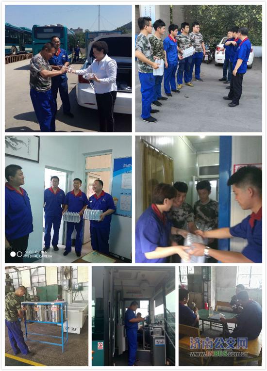 济南公交官网讯 为做好防暑降温工作,维修公司及时启动高温天气应急预案,基层各分公司为职工准备了绿豆汤、菊花茶、山楂水等防暑降温饮。6月5日中午,维修公司班子成员带领机关管理人员、分公司管理人员分别到各车间、各站点,为冒着酷暑坚守在运行一线的职工送清凉,传达总公司党委的关怀,并叮嘱职工安全生产,文明维修,注意身体,劳逸结合,切实做好车辆保障工作,为驾驶员提供可靠的保障。