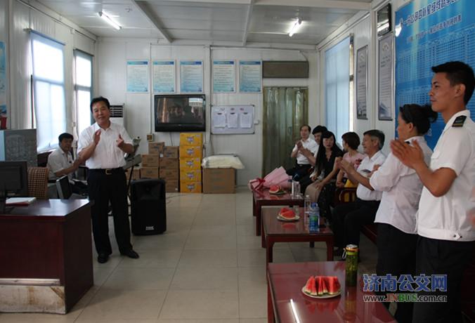 济南公交官网讯 炎炎夏日送清凉,浓浓关怀系基层。7月18日一早,总公司工会副主席赵德荣一行到一分公司祝甸车场,为战高温、斗酷暑,经受高温“烤”验的一线员工送来了矿泉水、饮料、香皂、水杯、毛巾、洗发液等防暑降温物品。带来了精彩的慰问演出,送来了属于总公司“娘家人”的贴心关怀。