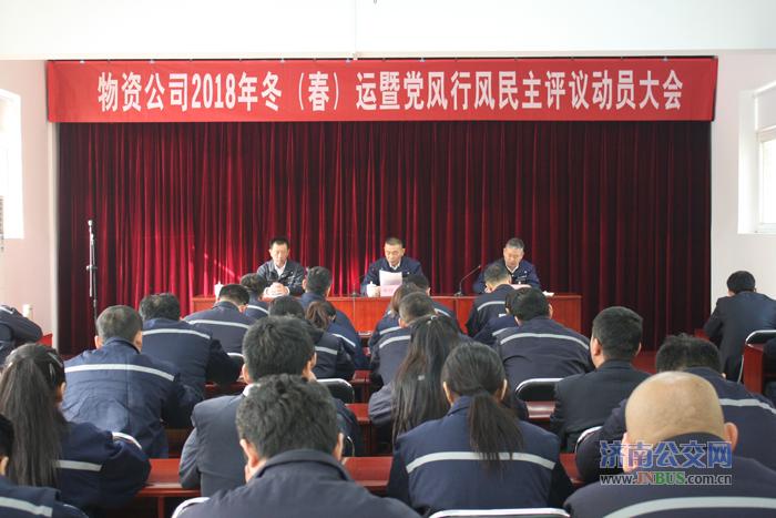 济南公交官网讯 11月14日上午,物资公司在公司会议室召开了2018年冬(春)运暨党风行风民主评议动员会。会议认真贯彻落实了总公司冬(春)运暨党风行风民主评议冬运大会精神,按照石总大会讲话工作要求,对2018年冬(春)运工作和党风行风民主评议工作进行了动员和部署。大会由物资公司党支部书记高新传主持,公司经理曲修业做了动员讲话,各部门负责人、职工代表共计50余人参加会议。