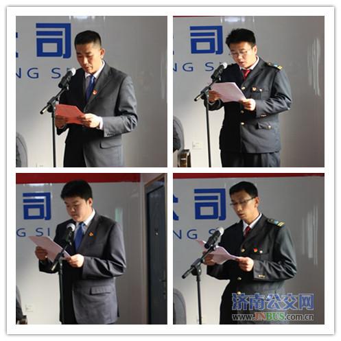 会上,公司副经理宋辉传达了北部公司《二〇一八年冬(春)运工作实施方案》,纪委书记孔建华宣读了北部公司《关于开展二〇一八年度民主评议党风行风工作的实施意见》。五队副队长魏汝朝、四队调度员张鑫、75路驾驶员刘阳立足自身岗位分别进行了表态发言,驾驶员周训廷代表团委向广大团员青年发出了倡议。